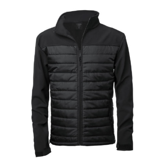 Veste imperméable et respirante dans une combinaison de matériaux soft Shell et polyester. Construction noire élégante avec fermeture éclair et poches latérales avec fermeture éclair et avec tirettes pour une ouverture facile. Poignets ajustables.